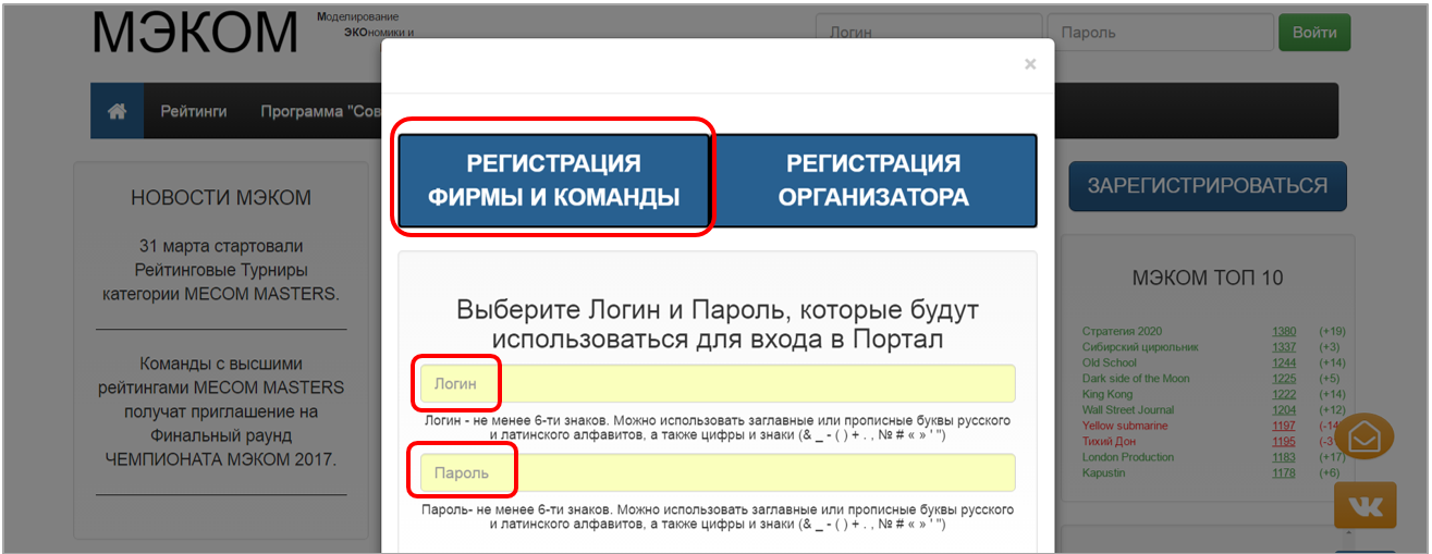 Вы можете одним кликом зарегистрировать свою Фирму на участие в турнире, нажав значок