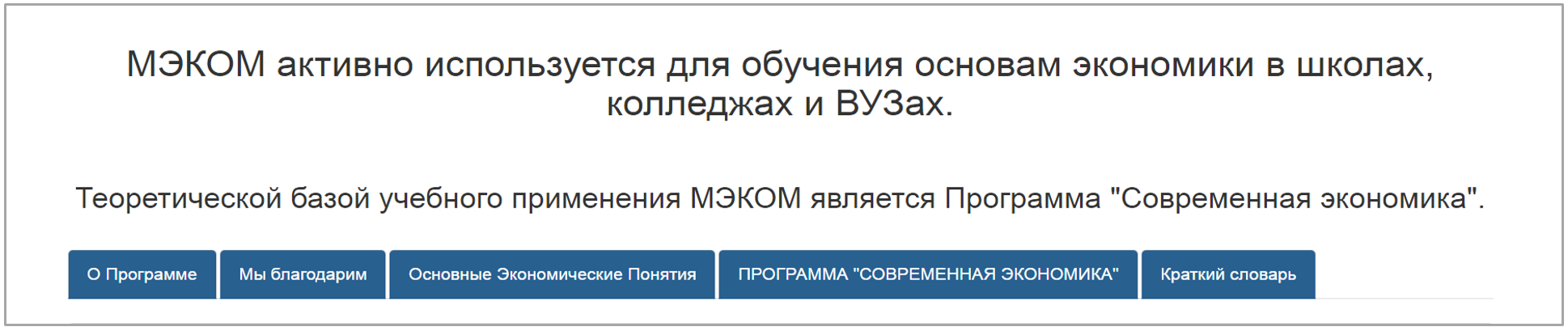 Раздел содержит программу, адаптированную к теоретической базе МЭКОМ.