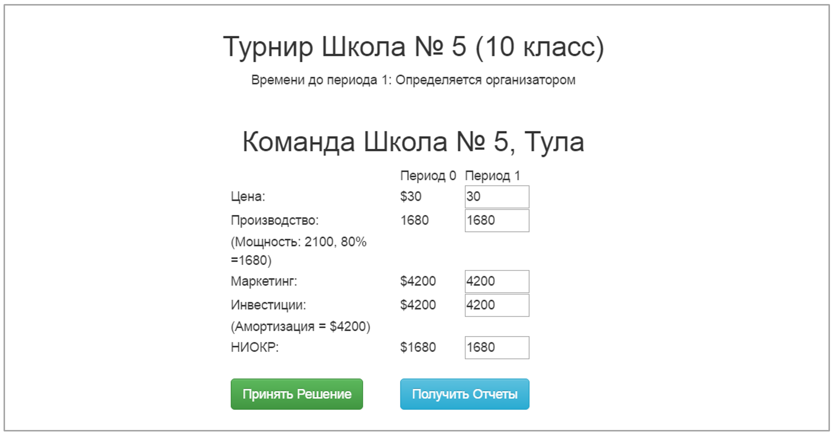 Вводом окончательного набора решений для команды цикл её действий в данном периоде завершается и начинается цикл следующего периода.