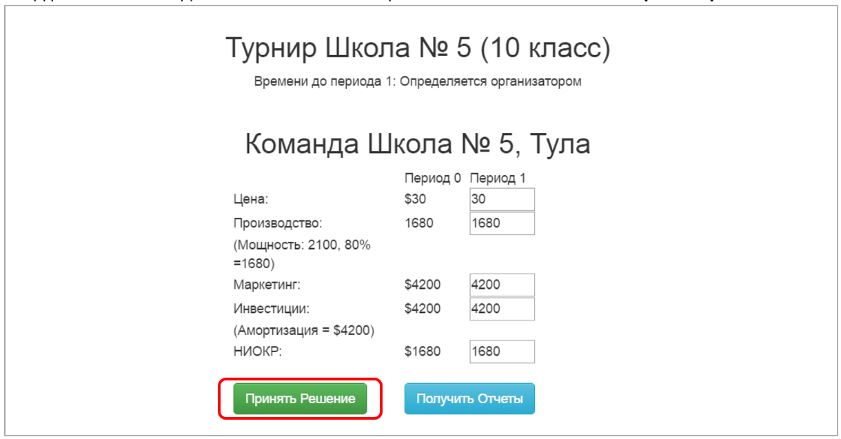 Ввод решений и каждого их изменения завершается нажатием кнопки «Принять решение»